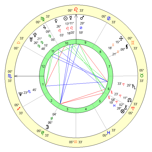 Mars | 0 Leo 0 | 29 Virgo 13 | 6 Virgo 13 |