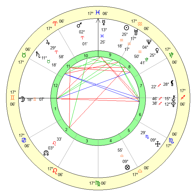 | Mars | 2 Aries 2 | 17 Cancer 34 | 20 Aries 52 |