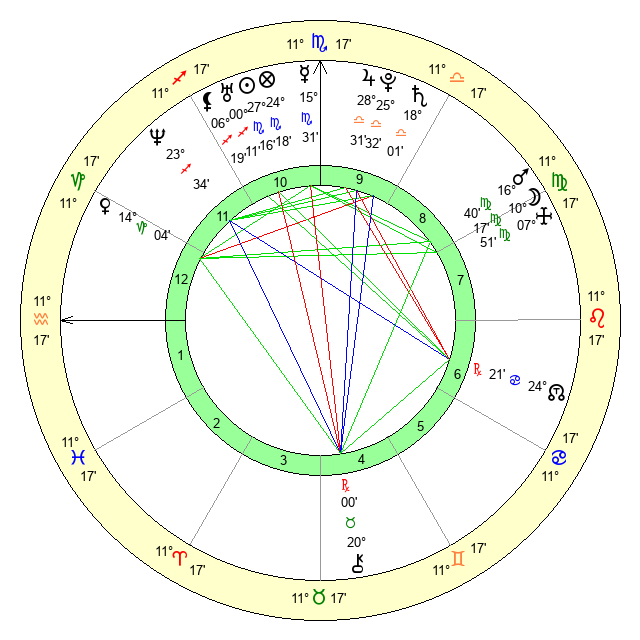 | Mars | 16 Virgo 40 | 10 Sagittarius 59 | 7 Libra 44 |