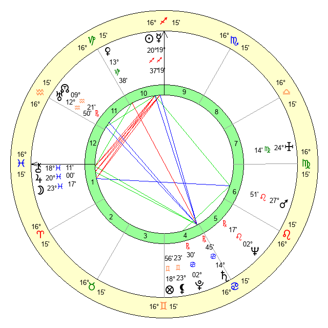 | Neptune | 2 Leo 17 | 27 Pisces 8 | 29 Cancer 54 |