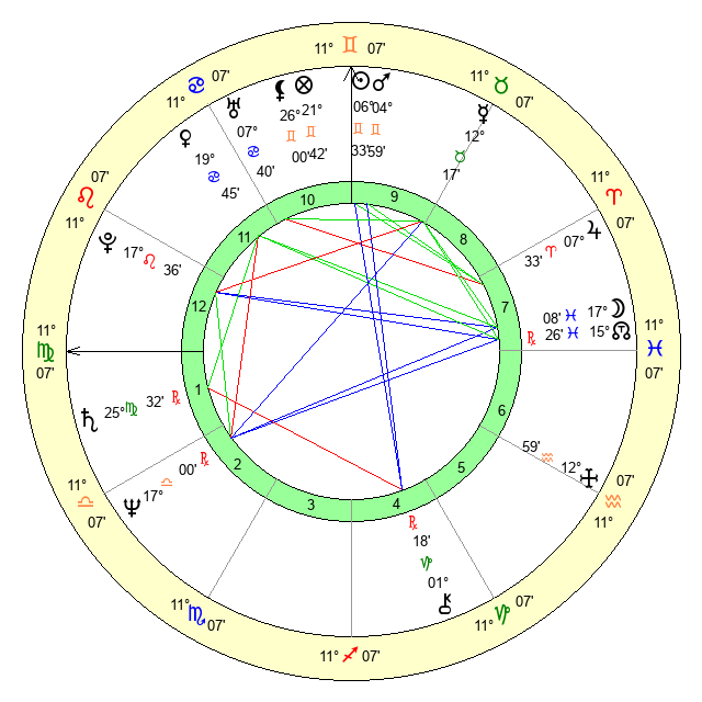 | Moon | 17 Pisces 8 | 29 Gemini 42 | 19 Scorpio 41 |