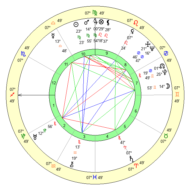 | Sun | 23 Virgo 24 | 24 Virgo 5 | 20 Capricorn 52 |