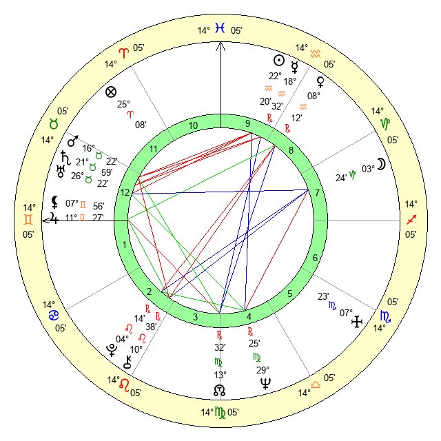 | Mercury | 18 Aquarius 32 | 24 Aquarius 56 | 0 Gemini 56 |