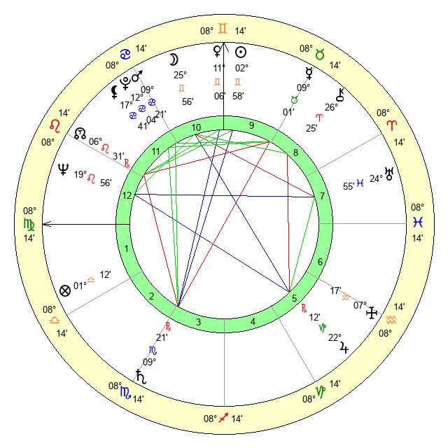 | Sun | 2 Gemini 59 | 3 Gemini 46 | 8 Virgo 43 |