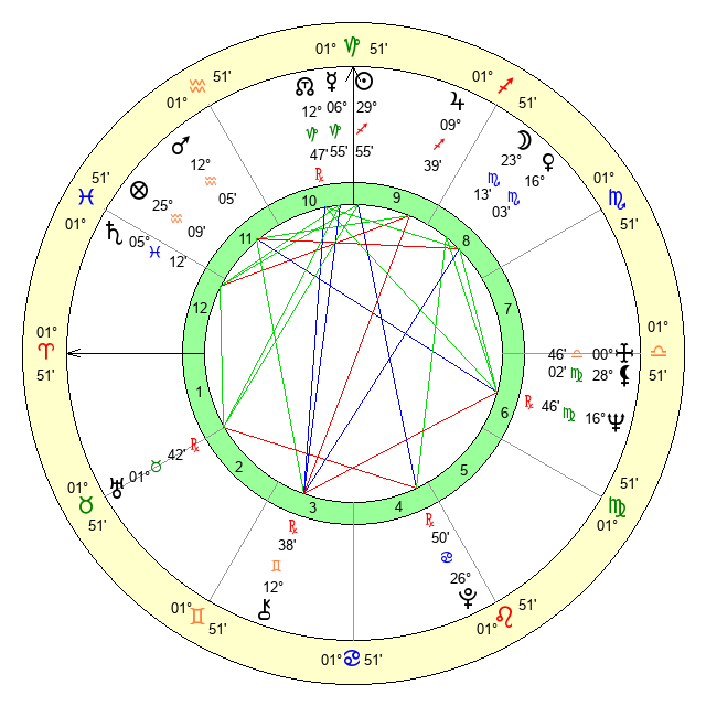 | Neptune | 16 Virgo 45 | 29 Pisces 24 | 14 Virgo 57 |