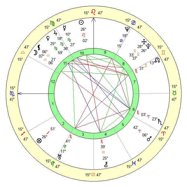 | Venus | 26 Virgo 0 | 22 Cancer 53 | 7 Aquarius 53 |