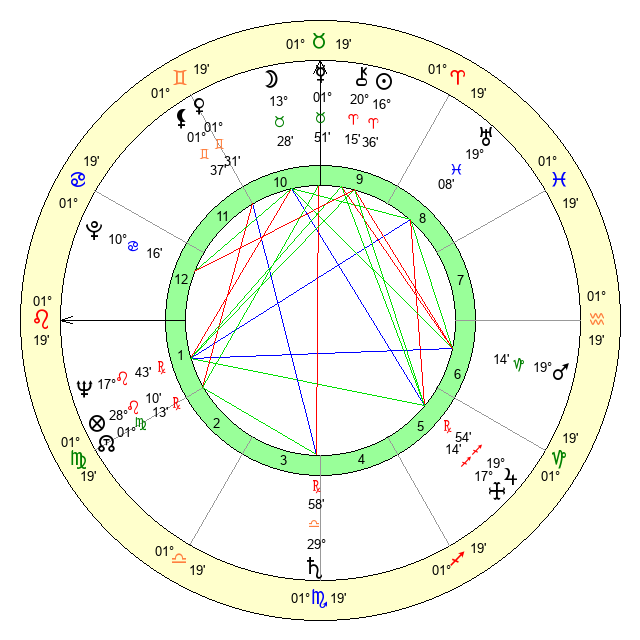 | Neptune | 17 Leo 42 | 0 Aries 16 | 19 Leo 7 |