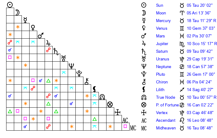 Moon | 5 Aries 11 | 21 Aries 2 | 10 Gemini 17 |