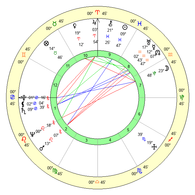 | Pluto | 1 Cancer 16 | 2 Aquarius 54 | 2 Cancer 39 |