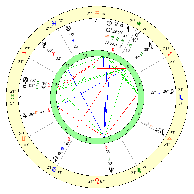 | Neptune | 2 Virgo 58 | 27 Pisces 44 | 0 Virgo 51 |