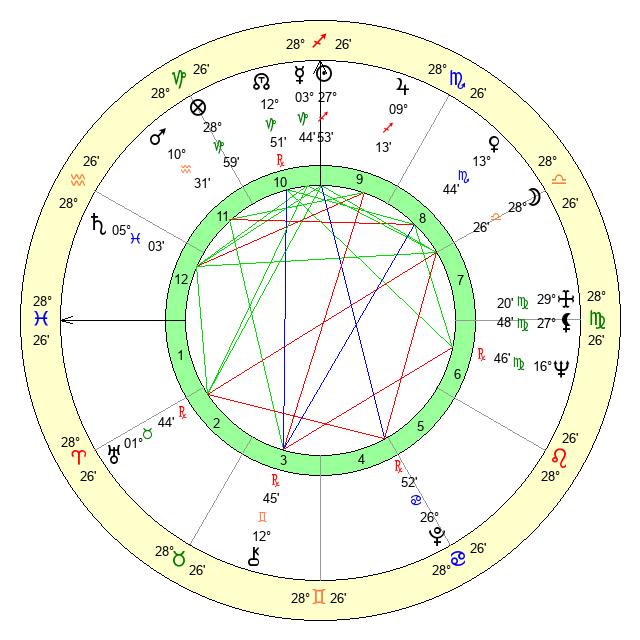 | Neptune | 16 Virgo 46 | 29 Pisces 23 | 15 Virgo 1 |