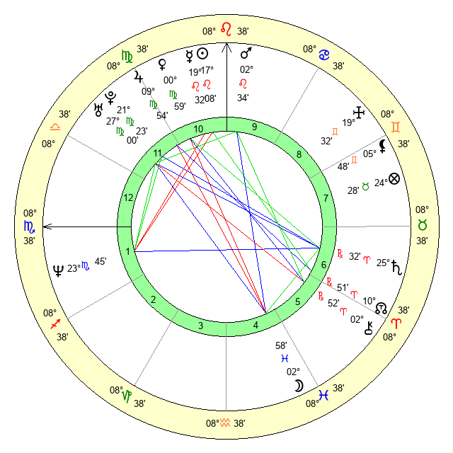 Mercury | 19 Leo 34 | 4 Leo 23 | 0 Scorpio 57 |