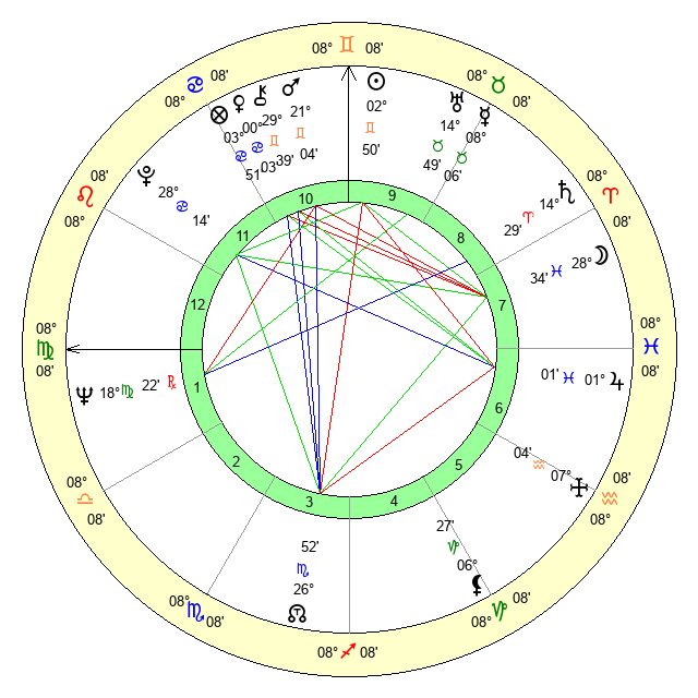 | Neptune | 18 Virgo 22 | 1 Aries 43 | 19 Virgo 57 |
