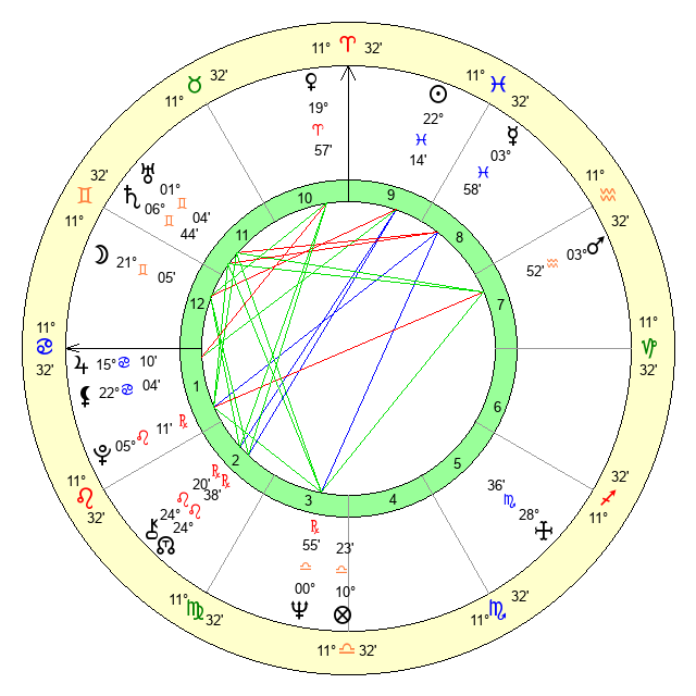 | Moon | 21 Gemini 8 | 16 Virgo 46 | 20 Gemini 51 |