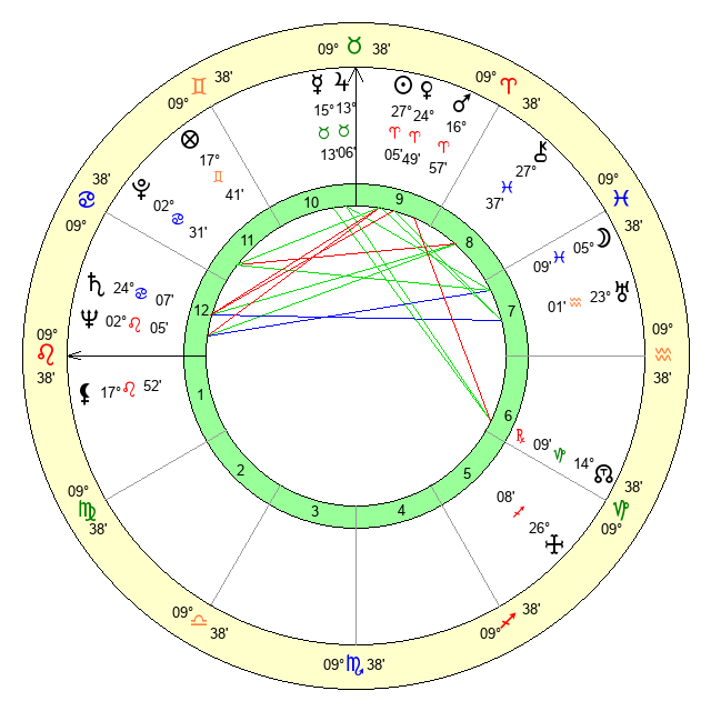 | Sun | 27 Aries 6 | 27 Aries 56 | 10 Leo 45 |