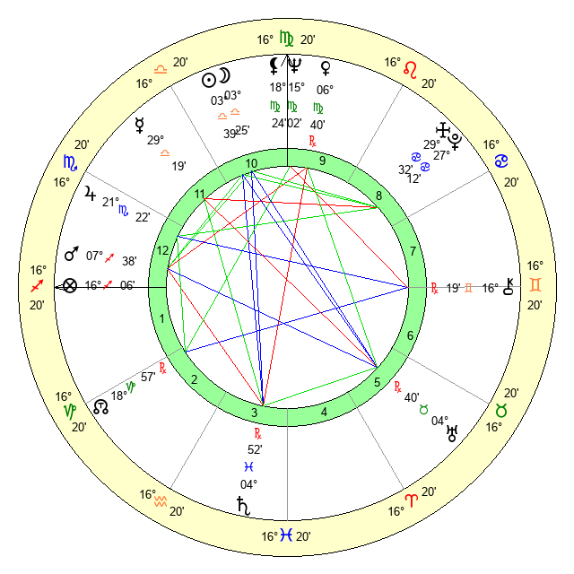 | Venus | 6 Virgo 40 | 10 Virgo 1 | 20 Scorpio 43 |