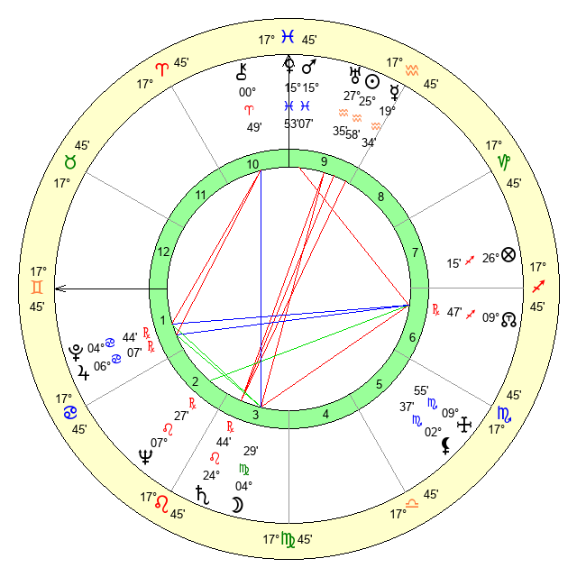 | Mars | 15 Pisces 7 | 17 Cancer 28 | 4 Gemini 28 |