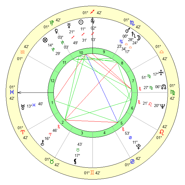 | Saturn | 29 Libra 8 | 12 Pisces 57 | 2 Scorpio 5 |