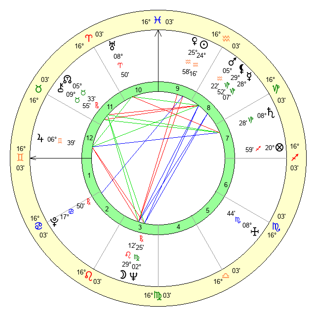 | Moon | 29 Leo 16 | 8 Virgo 8 | 17 Aquarius 12 |