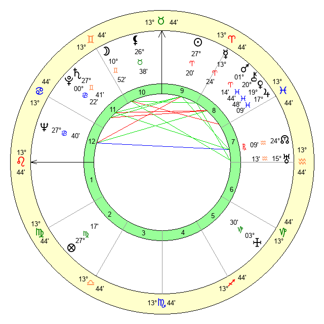 | Sun | 27 Aries 19 | 28 Aries 40 | 12 Leo 53 |