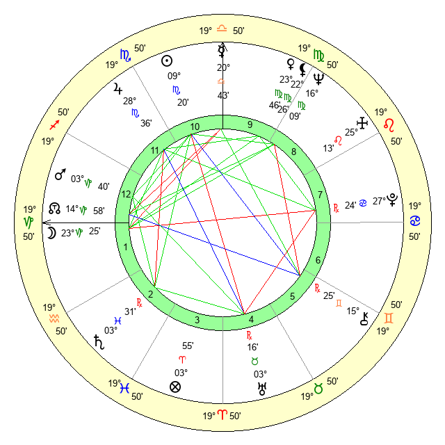 | Neptune | 16 Virgo 9 | 29 Pisces 44 | 16 Virgo 16 |