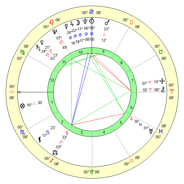 | Sun | 5 Cancer 55 | 7 Cancer 15 | 18 Libra 18 |
