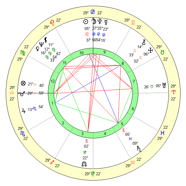 | Pluto | 25 Cancer 54 | 2 Aquarius 28 | 27 Cancer 24 |