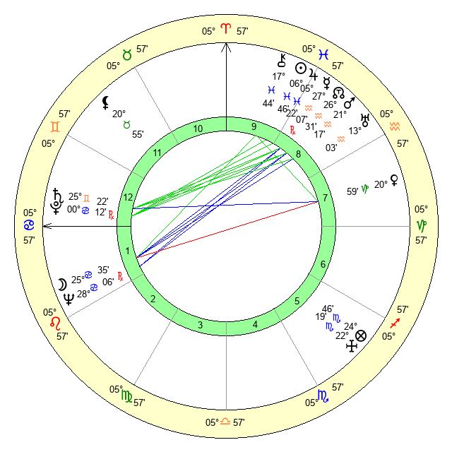 | Moon | 25 Cancer 34 | 16 Aquarius 58 | 5 Leo 5 |