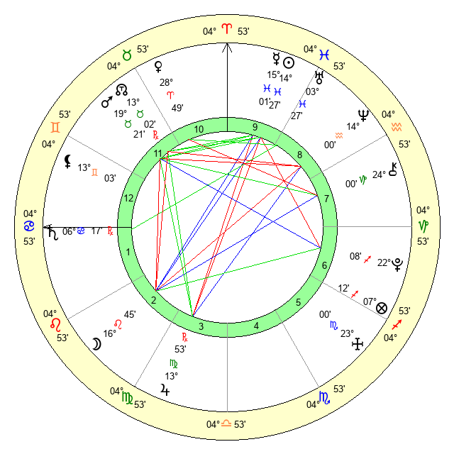 Moon | 16 Leo 42 | 18 Taurus 21 | 29 Taurus 37 |