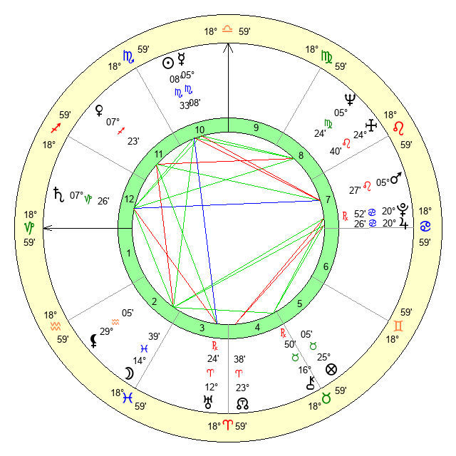 | Neptune | 5 Virgo 24 | 29 Pisces 46 | 4 Virgo 56 |