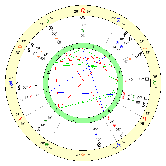| Neptune | 0 Virgo 5 | 0 Aries 45 | 1 Virgo 12 |