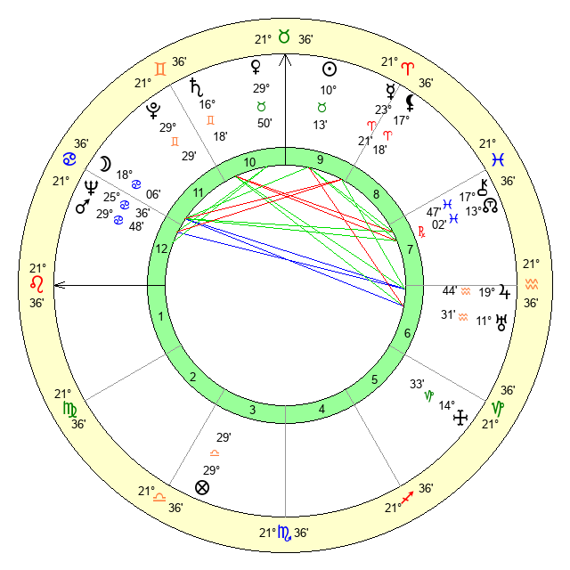 | Sun | 10 Taurus 13 | 11 Taurus 20 | 26 Leo 34 |