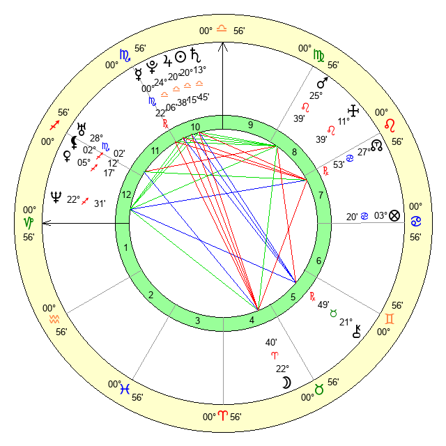 | Mars | 25 Leo 39 | 14 Scorpio 36 | 20 Virgo 23 |