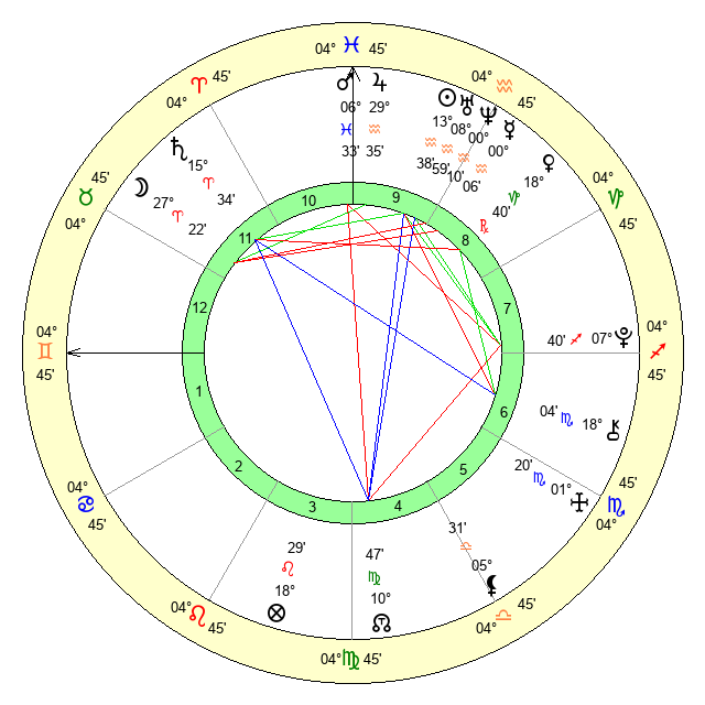 | Neptune | 0 Aquarius 10 | 28 Pisces 1 | 1 Aquarius 6 |