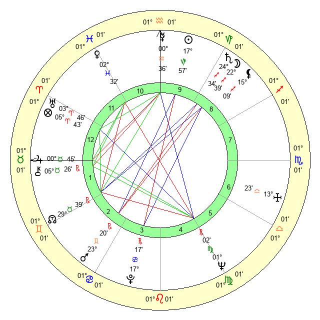 | Saturn | 24 Sagittarius 54 | 15 Pisces 5 | 0 Capricorn 50 |