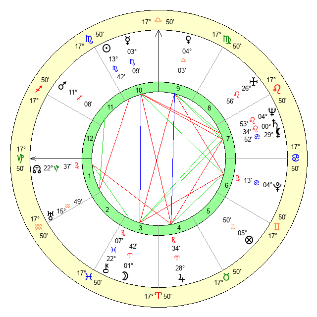 | Sun | 13 Scorpio 42 | 14 Scorpio 17 | 4 Pisces 16 |