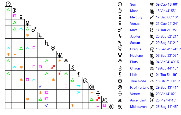 Moon | 13 Virgo 41 | 16 Capricorn 38 | 22 Aquarius 42 |