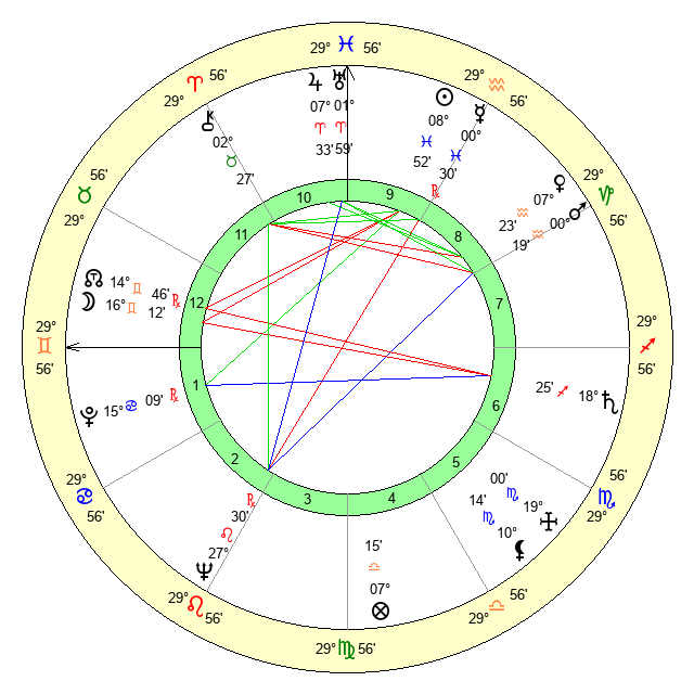 | Jupiter | 7 Aries 32 | 12 Gemini 15 | 0 Taurus 4 |