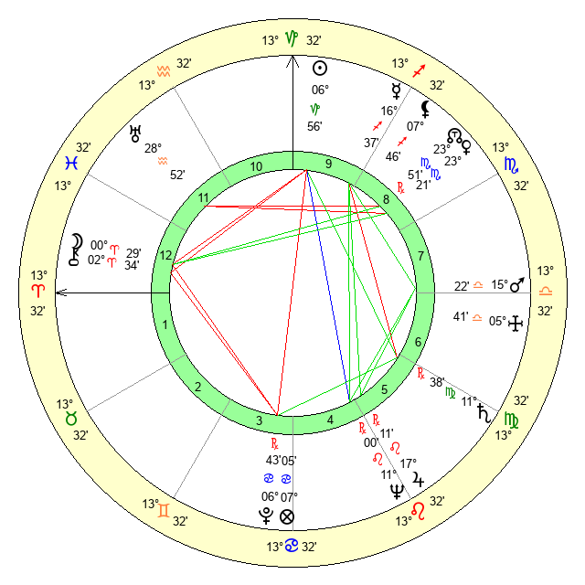 | Mars | 15 Libra 23 | 2 Leo 39 | 4 Scorpio 3 |