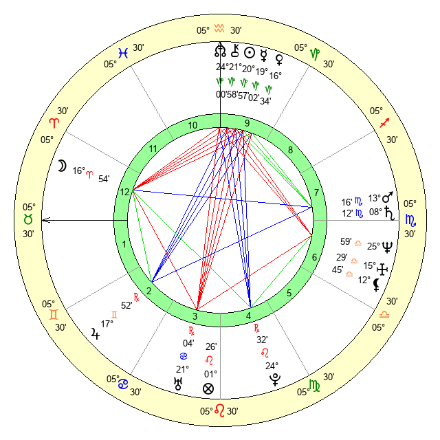 | Moon | 16 Aries 54 | 23 Gemini 27 | 18 Scorpio 2 |