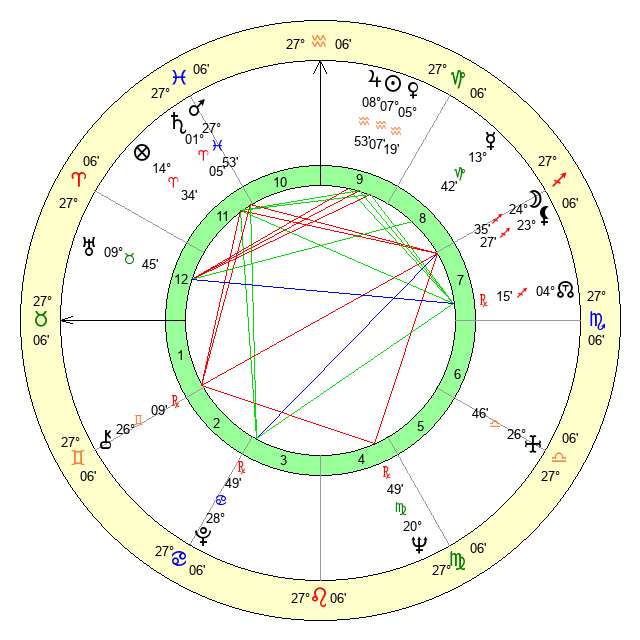 | Saturn | 1 Aries 12 | 16 Pisces 54 | 11 Aries 19 |