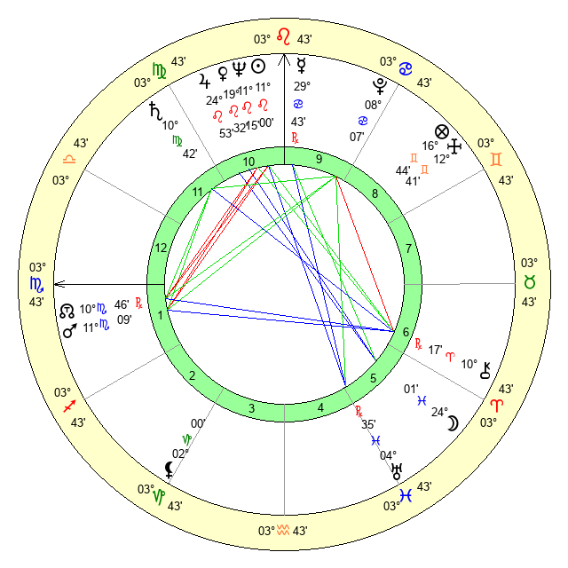 | Moon | 24 Pisces 3 | 5 Sagittarius 27 | 0 Aquarius 40 |