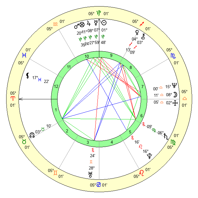 | Saturn | 6 Virgo 40 | 25 Pisces 39 | 2 Virgo 0 |
