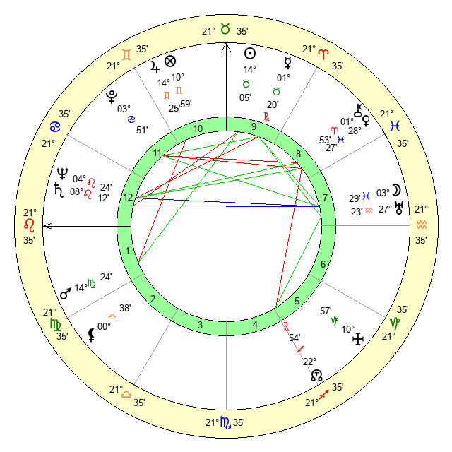 | Mars | 14 Virgo 25 | 7 Leo 39 | 2 Scorpio 1 |