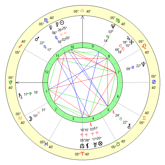 | Venus | 6 Scorpio 19 | 7 Libra 14 | 3 Pisces 14 |