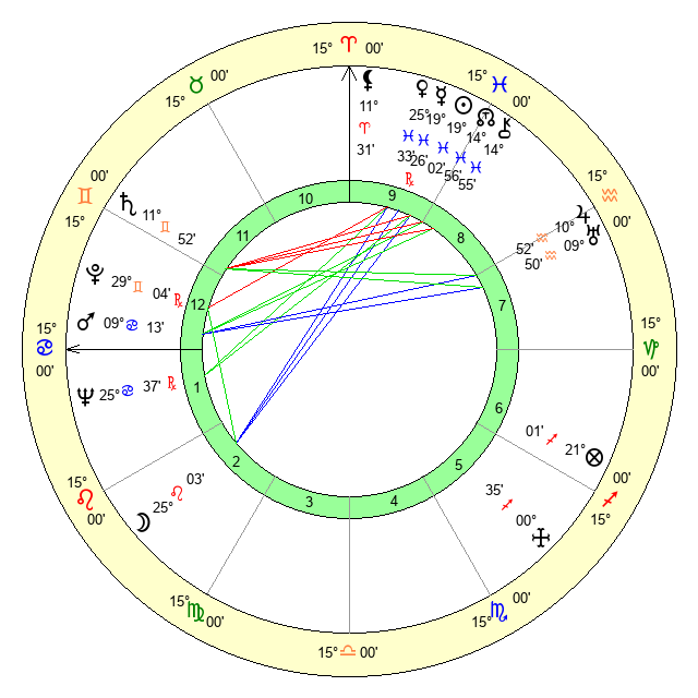 | Neptune | 25 Cancer 38 | 29 Pisces 14 | 27 Cancer 9 |