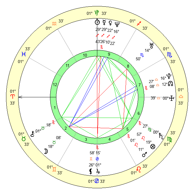 | Pluto | 16 Libra 28 | 0 Aquarius 45 | 16 Libra 36 |