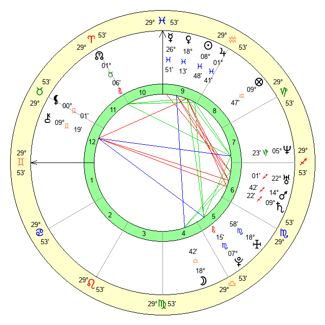 | Jupiter | 1 Pisces 42 | 12 Gemini 10 | 10 Pisces 42 |