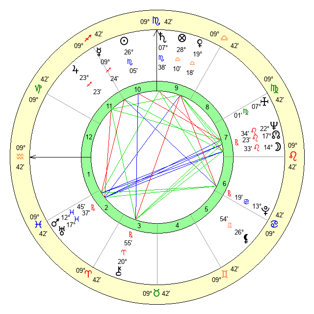 | Saturn | 8 Scorpio 9 | 12 Pisces 38 | 14 Scorpio 51 |
