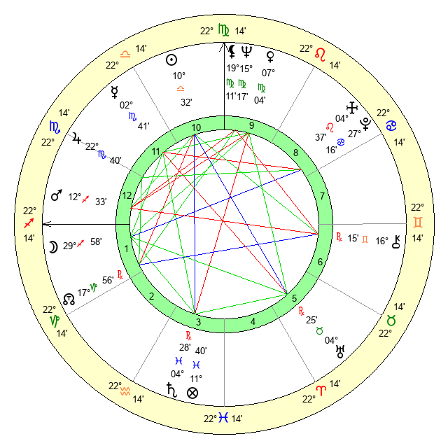| Neptune | 15 Virgo 17 | 0 Aries 26 | 16 Virgo 42 |